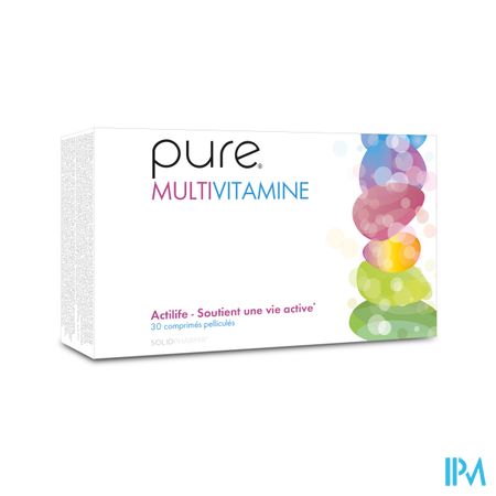 Pure Multivitamine Tabl 30 is een voedingssupplement, verkrijgbaar in uw buurtapotheek of online apotheek. Neem niet meer dan de aanbevolen dagelijkse dosis vermeld op de verpakking. Het vervangt geen gezonde levensstijl en gevarieerde en evenwichtige voeding. Vraag raad aan uw apotheker. Het product altijd buiten het bereik van kinderen houden.