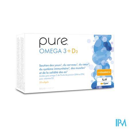 Pure Omega 3 + D3 is een voedingssupplement, verkrijgbaar in uw buurtapotheek of online apotheek. Neem niet meer dan de aanbevolen dagelijkse dosis vermeld op de verpakking. Het vervangt geen gezonde levensstijl en gevarieerde en evenwichtige voeding. Vraag raad aan uw apotheker. Het product altijd buiten het bereik van kinderen houden.
