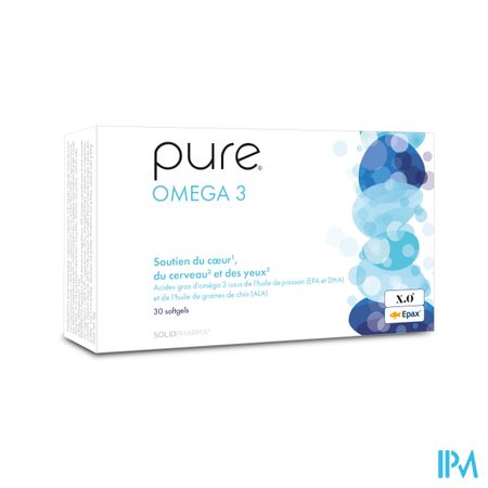 • Pure Omega 3 zijn visgelatine capsules met chiazaadolie (ALA) en visolie (EPA en DHA).