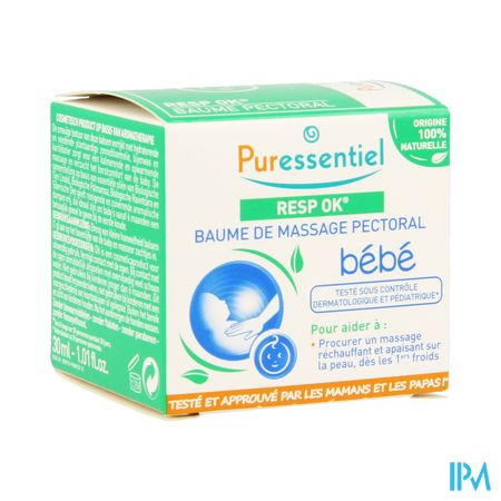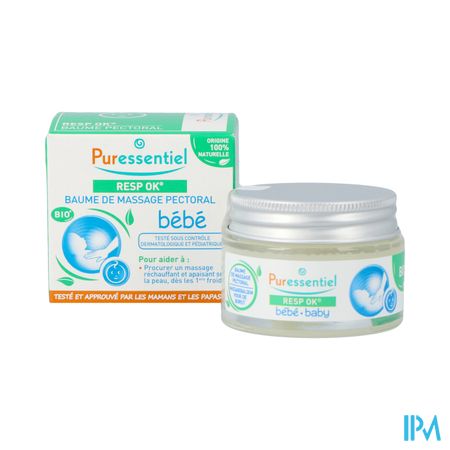 De smeltende textuur van deze Resp Ok® babybalsem, verrijkt met plantaardige zonnebloemolie, bijenwas en karitéboter met hydraterende en voedende eigenschappen, zorgt voor een ontspannende, verwarmende massage en geeft baby een kalmerend borstcomfort.