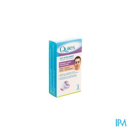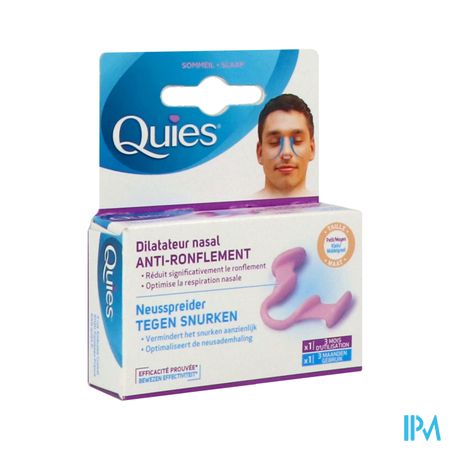 Met de Quies neusverwijder kunnen de neusgaten van de snurker lichtjes verwijd worden zodat de luchtdoorstroming gemakkelijker wordt en de ademhaling door de mond, die vaak samengaat met snurken, wordt vermeden. Eenvoudig te gebruiken, herbruikbaar gedurende 3 maanden. Verkrijgbaar in klein/gemiddeld en groot formaat. Vanaf 12 jaar oud. Deze medische hulpmiddelen zijn gereglementeerde gezondheidsproducten die in het kader van deze verordening van het CE-merkteken zijn voorzien. Lees de instructies zorgvuldig. Vraag uw apotheker om advies.