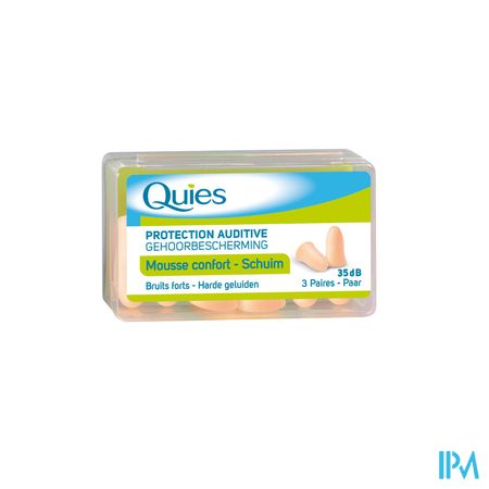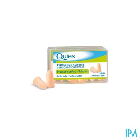 Met de gehoorbescherming uit schuim van Quies kunt u sterke geluiden met gemiddeld 35 dB verzwakken, zonder dat u volledig van de buitenwereld afgesloten bent. De anatomische vorm ervan past zich aan de gehoorgang aan zodat de bescherming perfect in het oor blijft zitten.