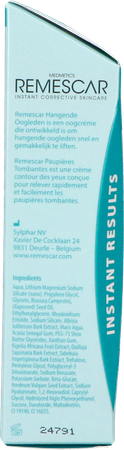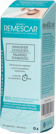 Remescar Hangende Oogleden lift onmiddellijk hangende oogleden. Het resultaat blijft tot wel 8u lang zichtbaar. Deze crème tegen hangende oogleden is uniek in z'n soort: onmiddellijk resultaat na slechts 1 applicatie. Deze nieuwe formule is zacht en delicaat voor de huid.