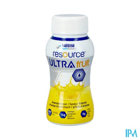 Resource Ultra Fruit Ananassmaak 4x200ml is een voedingssupplement, verkrijgbaar in uw buurtapotheek of online apotheek. Neem niet meer dan de aanbevolen dagelijkse dosis vermeld op de verpakking. Het vervangt geen gezonde levensstijl en gevarieerde en evenwichtige voeding. Vraag raad aan uw apotheker. Het product altijd buiten het bereik van kinderen houden.
