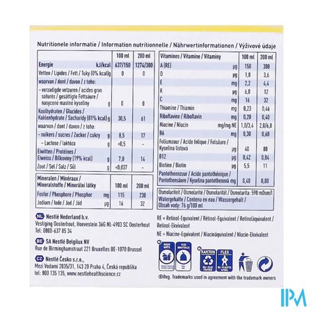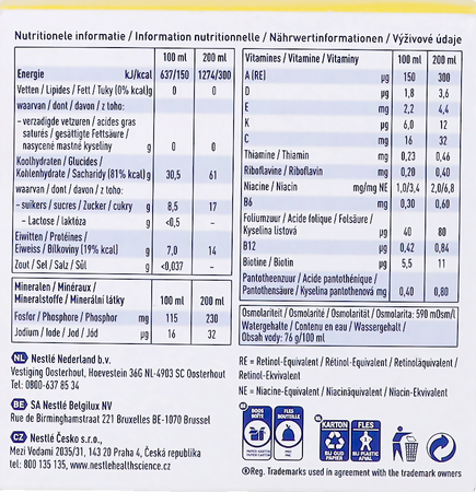 Belangrijke informatie: Gebruiken onder medisch toezicht. Niet geschikt om als enige voedingsbron te gebruiken. Geschikt vanaf de leeftijd van 10 jaar.