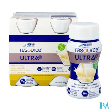 Resource Ultra+ is een eiwit‐ en energierijke voeding. Een flesje van 125ml bevat 20 g wei‐eiwitten (28% kcal) en 281 kcal (2,25 kcal/ml). Voeding voor medisch gebruik bij ondervoeding of risico op ondervoeding bij volwassenen.