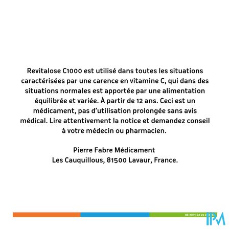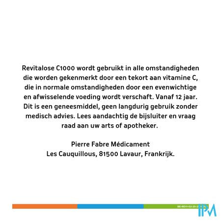 Revitalose C 1000 is gecontra-indiceerd bij kinderen jonger dan 12 jaar (wegens de hoge dosis vitamine C), bij patiënten met hemochromatose (wegens de verhoogde ijzerresorptie in het spijsverteringsstelsel), bij patiënten met glucose-6-fosfaatdehydrogenasedeficiëntie (gevaar voor hemolyse) of sikkelcelanemie vanaf 5 g/dag (inductie van een crisis), bij patiënten met fenylketonurie, bij patiënten met acute nierinsufficiëntie en in geval van overgevoeligheid voor één van de bestanddelen.