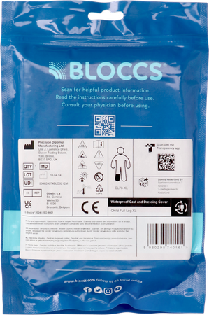 De sealprotect hoes biedt een veilige bescherming voor gipsbandages en de huid tijdens het douchen, zwemmen en baden.