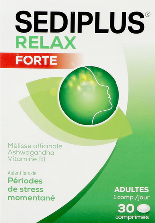 Sediplus Relax Forte Comp 30 is een voedingssupplement, verkrijgbaar in uw buurtapotheek of online apotheek. Neem niet meer dan de aanbevolen dagelijkse dosis vermeld op de verpakking. Het vervangt geen gezonde levensstijl en gevarieerde en evenwichtige voeding. Vraag raad aan uw apotheker. Het product altijd buiten het bereik van kinderen houden.