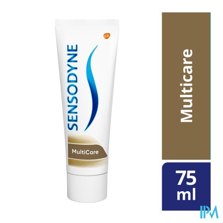 Sensodyne Multicare is een dagelijkse fluoride tandpasta die de gevoeligheid verlicht en uw tanden rondom beschermt. Het werkt diep in de tand om de gevoeligheid te verminderen. Twee keer per dag poetsen met Sensodyne Multicare leidt tot een afname van de gevoeligheid in slechts 2 weken, wat opbouwt om 24/7 bescherming te bieden bij langdurig gebruik. Sensodyne Multicare bevat fluoride om het glazuur te versterken en te beschermen tegen tandbederf. Deze tandpasta helpt ook om de vorming van gele en lelijke tandsteen rond de tandvleesrand tegen te gaan. Als je last hebt van gevoelige tanden, heb je waarschijnlijk blootliggend tandbeen. Bij blootliggend tandbeen kan koud of warm eten en drinken de zenuw prikkelen en dat kan gevoelig zijn. Tandbeen dat beschermd wordt door tandglazuur of tandvlees, kan bloot komen te liggen door te hard poetsen, tandenknarsen en/of tanderosie. Gebruik Sensodyne Multicare als dagelijkse tandpasta: (1) Biedt 24/7 bescherming bij gevoelige tanden en alle voordelen van een dagelijkse fluoride tandpasta, sterke tanden & gezond tandvlees, (2) Bevat een antibacterieel middel dat bij regelmatig poetsen helpt het tandvlees gezond te houden, (3)Verwijdert tandplak bij 2x daags poetsen en bevat fluoride dat helpt beschermen tegen cariës, (4) Door de muntsmaak voelt je mond schoon en fris.
