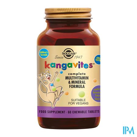 Solgar Kangavites™ Bouncing Berry is een multi-vitaminen/mineralencomplex voor peuters en kleuters. Solgar Kangavites™ voorziet in de basisbehoefte aan vitaminen en mineralen.