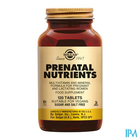 Solgar Prenatal Nutrients bevat voor vrouwen die zwanger willen worden, zwanger zijn of borstvoeding geven, een dagelijkse aanvulling van vitaminen en mineralen, waaronder foliumzuur.
