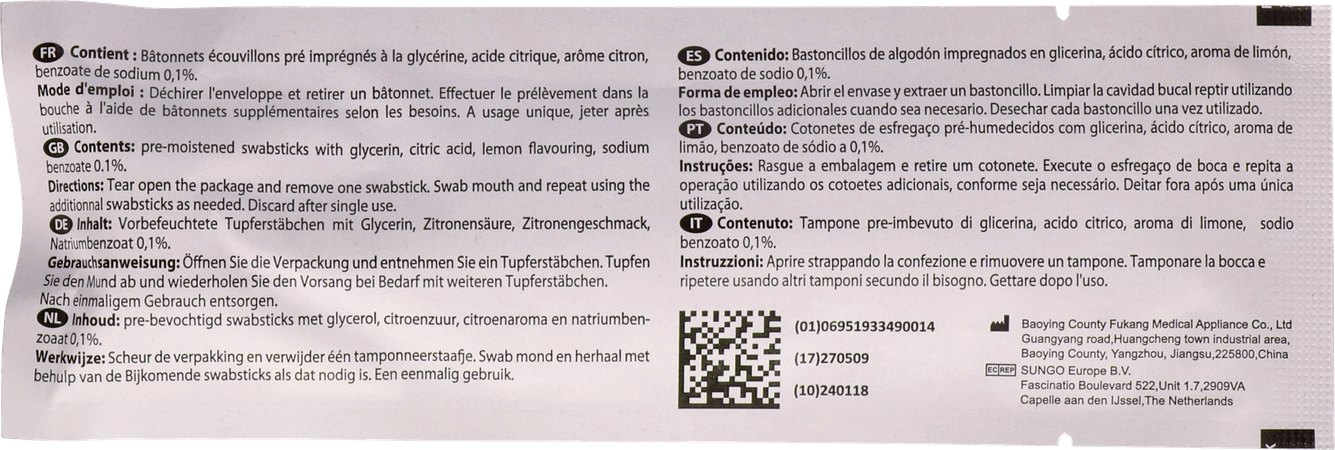 Wattenstaafjes gedrenkt in glycerine worden gebruikt om de lippen en slijmvliezen van de mondholte van patiënten met een speekselafwijking te verzorgen. Glycerine houdt de huid van de lippen soepel en vochtig. De citroen-appelgeur stimuleert speekselvorming en vermindert het dorstgevoel.