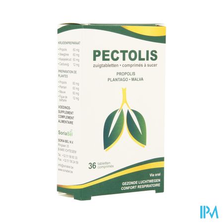 Soria Pectolis Zuigtabl 36 is een voedingssupplement, verkrijgbaar in uw buurtapotheek of online apotheek. Neem niet meer dan de aanbevolen dagelijkse dosis vermeld op de verpakking. Het vervangt geen gezonde levensstijl en gevarieerde en evenwichtige voeding. Vraag raad aan uw apotheker. Het product altijd buiten het bereik van kinderen houden.