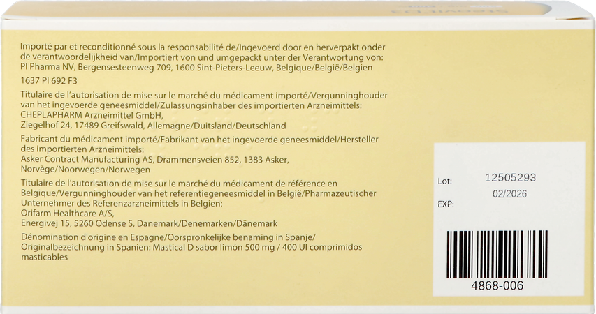 - cholecalciferol (vitamine D3) 400 I.E. (10 microgram)