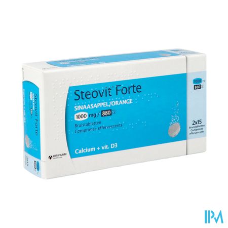 De werkzame stoffen in Steovit Forte sinaasappel zijn:- 1000 mg calcium (als calciumcarbonaat)- 880 I.E. vitamine D3 (overeenkomend met 22 microgram cholecalciferol)