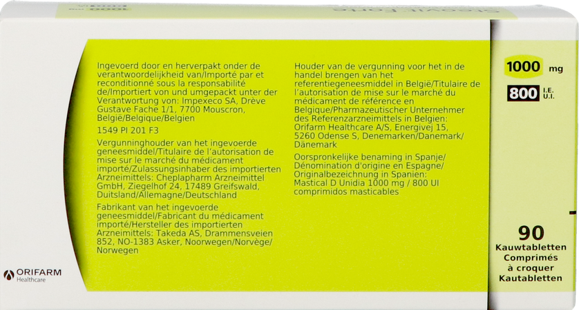 - Vitamine D - en calciumsupplement, als adjuvans bij een specifieke behandeling van osteoporose bij patiënten die een risico lopen op een vitamine D - en calciumtekort.
