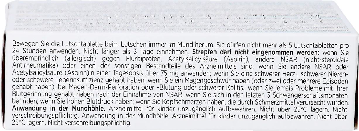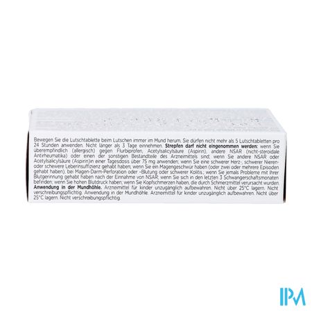De werkzame stof in dit middel (waardoor het geneesmiddel werkt) is flurbiprofen 8,75mg.