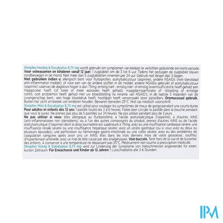 Strepfen Honing & Eucalyptus 8,75 mg zuigtabletten wordt gebruikt om symptomen van keelpijn zoals pijnlijke keel, pijn en zwelling van de keel en moeilijk slikken te verlichten bij volwassenen en kinderen ouder dan 12, gedurende een korte periode.