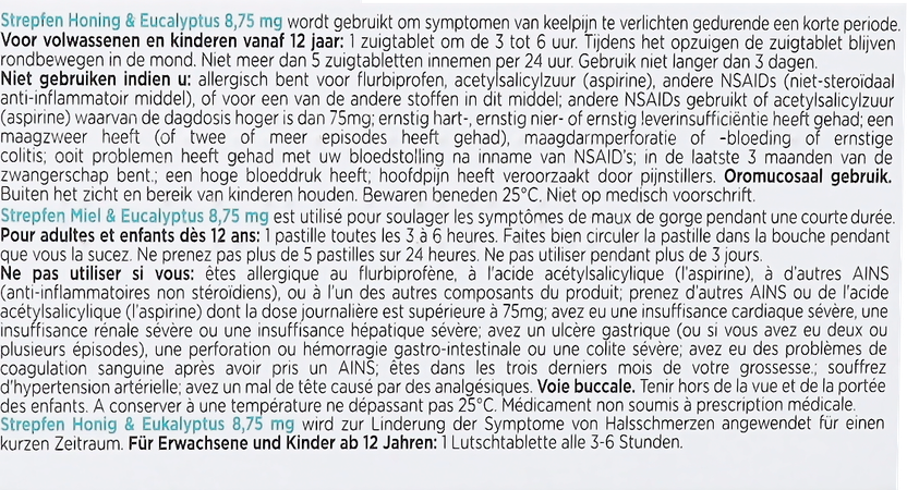 Strepfen Honing & Eucalyptus 8,75 mg zuigtabletten bevat flurbiprofen.