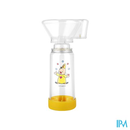 Voorzetkamer als eerste keuze voor kinderen jonger dan 7 jaar – past op vrijwel elke puffer. Deze voorzetkamer (of ook spacer genoemd) zorgt voor een sterk verhoogde en vergemakkelijkte opname van het medicament in de puffer.