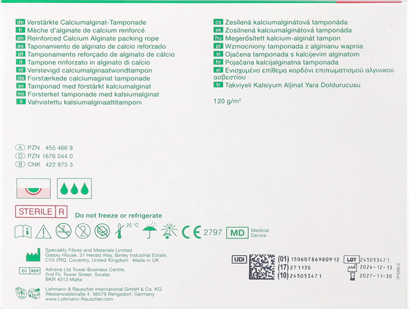 Calciumalginaat-vezels 80%, cellulosevezels 20%.