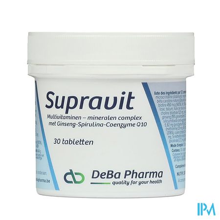 Supravit is een multivitaminen-mineralen preparaat die uw algemene tekorten aan vitaminen en mineralen aanvult. Een dagelijkse aanvulling met Supravit is dan ook primordiaal voor een goede energiehuishouding. Dit hooggedoseerd multivitaminen-mineralen complex is aangevuld met extra Ginseng, Coenzyme Q10 en Spirulina. Ook sporters hebben veelal nood aan een extra aanvulling om topprestaties te kunnen leveren.