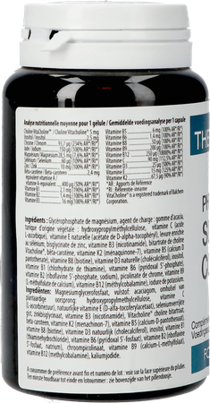 PHYSIOMANCE Suvimine Complex combineert 2 bio-actieve ingrediënten (choline en inositol), 13 vitaminen (vitaminen A, B1, B2, B3, B5, B6, B8, B9, B12, natuurlijke D3 en E en K2) en 7 mineralen (chroom, koper, ijzer, jodium, magnesium, selenium, zink) in een enkele capsule, die bijdragen tot :