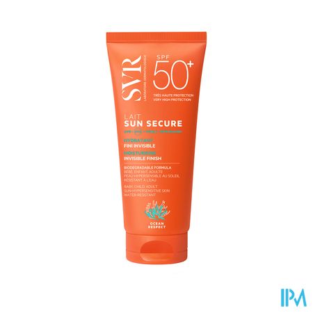 Biologisch afbreekbare hydraterende melk SPF50+".SUN SECURE Melk SPF50+ biedt een zeer hoge dermatologische bescherming met de nieuwe SVR1 filterpatent dat het zeemilieu respecteert en de geëvalueerde endocriene mechanismen2. Gecombineerd met antioxidanttechnologie, pakt het alle soorten straling aan3 : - UVB + UVA: 4 zonnefilters - ZICHTBARE + INFRAROOD: antioxidant technologie 1- Octrooi n°FR19/04215 2- Op het eindproduct getest door een onafhankelijk laboratorium, dat deskundig is op het gebied van hormoonontregeling (evaluatie van bepaalde belangrijke mechanismen van het oestrogene, androgene en schildklierstelsel) 3- Een zonbeschermingsproduct beschermt nooit volledig"