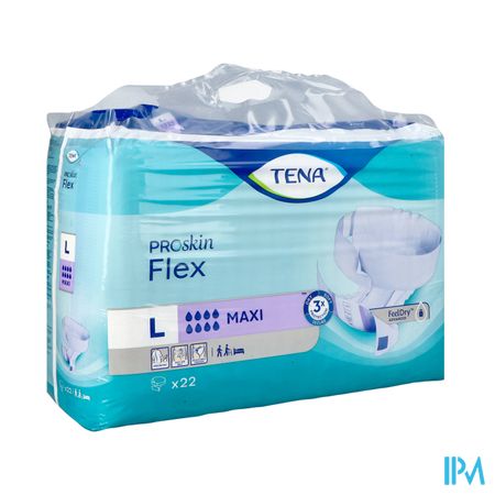 TENA Flex Maxi is een flexibel incontinentieverband met heupband, met een speciaal ontwerp waardoor het product eenvoudiger en ergonomischer kan worden verwisseld, geschikt voor zowel mobiele als niet-mobiele mensen. Voor uitstekende bescherming leidt TENA ProSkin Flex met FeelDry Advanced™ het vocht snel weg van het oppervlak, zodat de huid droog blijft. De superabsorberende, snelwerkende kern sluit zelfs grotere hoeveelheden urine snel op voor een droog gevoel, en de volledig ademende achterzijde van ConfioAir™ zorgt dat de huid kan ademen. Al deze kenmerken zorgen dat de natuurlijke gezondheid van de huid wordt behouden. De verstelbare heupband van ComfiStretch zorgt voor een nauwsluitende pasvorm om het comfort te verhogen en betere bescherming te bieden tegen doorlekken. Voor gebruiksgemak is de heupband voorzien van klittenband die aan de voorzijde kan worden bevestigd en volledig verstelbaar is voor verschillende lichaamstypes.