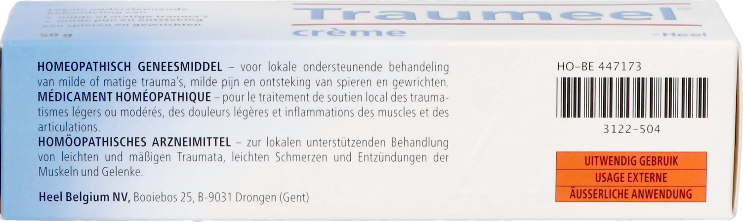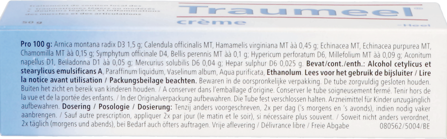 Traumeel® Crème is een homeopathisch geneesmiddel met bioregulerende eigenschappen – voor uitwendig gebruik bij aandoeningen van het bewegingsapparaat, met inbegrip van de ondersteunende behandeling van milde of matige traumata, milde pijn en ontsteking van spieren en gewrichten.