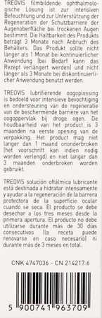 - Bij gebruik van andere oogoplossingen moet ten minste 15 minuten worden gewacht voordat TREOVIS kan worden aangebracht. Het preparaat moet als laatste worden toegediend.