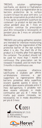 TREOVIS is bedoeld voor intensieve bevochtiging en ondersteuning van de regeneratie van de beschermende barrière van het oogoppervlak bij droge ogen. Het verlicht de symptomen van het matige en ernstige drogeogensyndroom. Het versnelt de regeneratie van de oppervlaktestructuren van het oog na een operatie.
