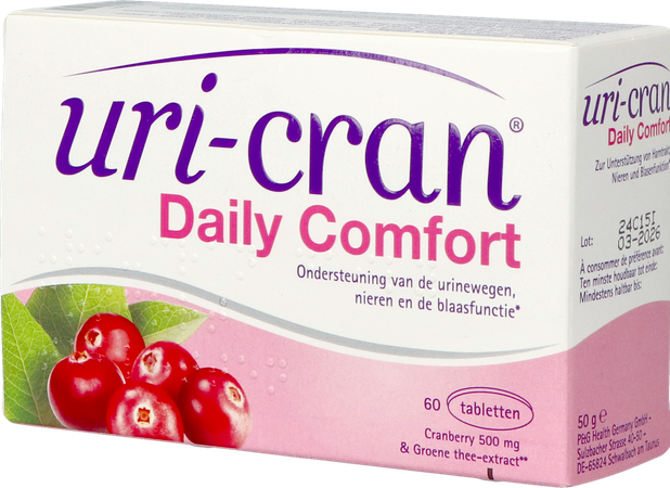 Uri-cran Daily Comfort Tabl 60 is een voedingssupplement, verkrijgbaar in uw buurtapotheek of online apotheek. Neem niet meer dan de aanbevolen dagelijkse dosis vermeld op de verpakking. Het vervangt geen gezonde levensstijl en gevarieerde en evenwichtige voeding. Vraag raad aan uw apotheker. Het product altijd buiten het bereik van kinderen houden.