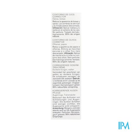 Deze Corrigerende oogomtrekcrème met 95% ingrediënten van natuurlijke oorsprong verzacht wallen en kringen. De frisse gel-crème trekt snel in.