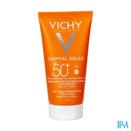 Vichy Capital Soleil Dry Touch Zonnecrème SPF50 is een matterende zonnebrand met factor 50 en matte finish ideaal voor een vette huid. Zeer aangename verzorging voor dagelijks gebruik, deze zonnebrandcrème met hoge factor waardoor je (bij regelmatig gebruik) minder risico loopt op vroegtijdige huidveroudering door de zon.