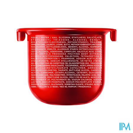 INGREDIËNTEN: AQUA / WATER • GLYCERINE • ETHYLHEXYL SALICYLATE • ETHYLHEXYL TRIAZONE • DENAT. ALCOHOL • BIS-ETHYLHEXYLOXYPHENOL METHOXYPHENYL TRIAZINE • DIMETHICONE • LAUROYL LYSINE • BUTYL METHOXYDIBENZOYLMETHANE • NIACINAMIDE • OCTYLDODECANOL • BEHENYL ALCOHOL • ISOPROPYL ISOSTEARATE • PERLITE • ALUMINIUM OCTENYL SUCCINATE • CETYLALCOHOL • ADENOSINE • CAPRYLOYL SALICYLZUUR • CITROENZUUR • GRIFOLA FRONDOSA FRUIT EXTRACT • HYDROXYACETOPHENONE • PALMITOYL TETRAPEPTIDE-7 • PALMITOYL TRIPEPTIDE-1 • RHAMNOSE • ACETYLESOODZOUHYALURONAAT • NATRIUMHYALURONAAT • SR-TETRA (TETRA SH-POLYPEPTIDE-69 DIPEPTIDE-78) OLIGOPEPTIDE-252 • TRISODIUMETHYLENEDIAMINE DISUCCINAAT • TOCOFEROL • ACRYLAMIDE/ACRYLOYLDIMETHYLTAURAAT-COPOLYMEER • AMMONIUMPOLYACRYLOYLDIMETHYLTAURAAT • BUTYLEENGLYCOL • CAPRYLYLGLYCOL • CARBOMEER • CETEARYLALCOHOL • CETEARYLGLUCOSIDE • ISOHEXADECANE • MALTODEXTRINE • MYRISTINEZUUR • PALMITEINEZUUR • PEG-100 STEARATE • PENTYLEENGLYCOL • POLY C10-30 ALKYL ACRYLATE • POLYSORBAAT 20 • POLYSORBAAT 80 • NATRIUMCHLORIDE • NATRIUMLACTATE • NATRIUMFOSFAAT • NATRIUMPOLYACRYLAATZETMEEL • NATRIUMSTEAROYLGLUTAMAAT • SORBITANO-OLEAAT • STEARINEZUUR • CI 15985 / GEEL 6 • CI 16035 / ROOD 40 • PARFUM / GEURSTOF (F.I.L. N70057635/1).