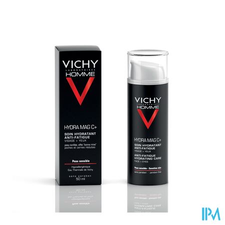 De Hydra Mag C+ van Vichy is een gezichtsverzorging voor mannen met een gevoelige huid, die tekenen van vermoeidheid vertoont: vochtarme huid, doffe teint, vermoeide blik, kringen en wallen.