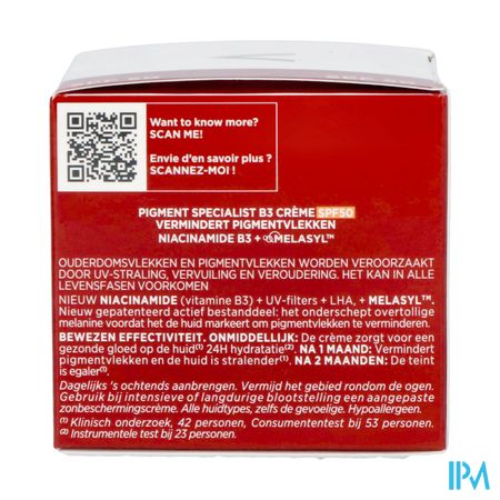 Onze nieuwe B3 dagcrème tegen pigmentvlekken SPF50 wordt gedreven door een anti-pigmentvlekken complex en een hoge bescherming met SPF50. Deze crème wordt aanbevolen voor vrouwen die op zoek zijn naar anti-aging resultaat dat pigmentvlekken voorkomt en rimpels vermindert.
