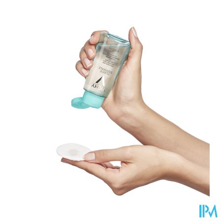 Oogmake-up remover van Vichy voor gevoelige ogen die oogmake-up verwijdert en de oogcontouren kalmeert. De formule bevat korenbloemextract en vitamine B5 om de gevoelige huid rond de ogen te kalmeren en hydrateren.