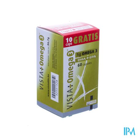 1 capsule VISTA-Omega 3 bevat 1,1 g gezuiverde visolie van farmaceutische kwaliteit met 1 g omega-3 vetzuren waarvan 450 mg DHA (docosahexoëenzuur) en 500 mg EPA (eicosapentaëenzuur).
