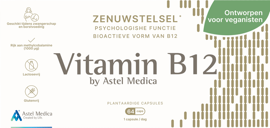 Vitamine B12, ook bekend als cobalamine, is een wateroplosbare vitamine die essentieel is voor de normale werking van de hersenen, het zenuwstelsel en de bloedvorming. Groenten en fruit bevatten bijna geen vitamine B12. Daarom is vitamine B12 bij de mens bijna uitsluitend afkomstig van voedsel van dierlijke oorsprong (orgaanvlees, vis, schaaldieren, enz.). Bij een speciaal dieet waarbij dierlijke producten geheel of gedeeltelijk worden afgeschaft, is soms een aanvullende inname van vitamine B12 nodig. In dat geval moet de voorkeur worden gegeven aan bioactieve vormen die rechtstreeks door het lichaam worden opgenomen, zoals de methylcobalamine in Vitamin B12 by Astel Medica.