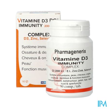 Vitamine D3 2000ie Immunity Pharmagenerix Tabl 90 is een voedingssupplement, verkrijgbaar in uw buurtapotheek of online apotheek. Neem niet meer dan de aanbevolen dagelijkse dosis vermeld op de verpakking. Het vervangt geen gezonde levensstijl en gevarieerde en evenwichtige voeding. Vraag raad aan uw apotheker. Het product altijd buiten het bereik van kinderen houden.