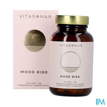 Vitasonar Moodrise V-caps 60 is een voedingssupplement, verkrijgbaar in uw buurtapotheek of online apotheek. Neem niet meer dan de aanbevolen dagelijkse dosis vermeld op de verpakking. Het vervangt geen gezonde levensstijl en gevarieerde en evenwichtige voeding. Vraag raad aan uw apotheker. Het product altijd buiten het bereik van kinderen houden.