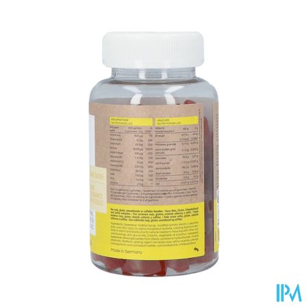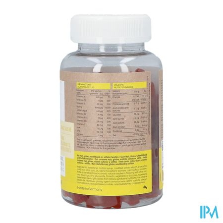 Ingredients: Sweetener maltitol syrup, modified potato starch, L-ascorbic acid, acid citric acid, DL-alpha-tocopheryl acetate, coloring food (concentrate of carrot and blackcurrant), natural raspberry flavoring with other natural flavorings, zinc gluconate, D-biotin, vegetable oil (coconut, rapeseed), sweetener steviol glycosides, pyridoxine hydrochloride, choline bitartrate, riboflavin, glazing agent carnauba wax, retinyl acetate, pteroylmonoglutamic acid, potassium iodide, cyanocobalamin, cholecalciferol.