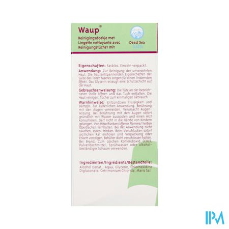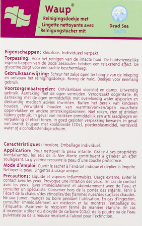 Waup, reinigingsdoekjes met Dead Sea Salts voor de reiniging en bescherming van een intacte huid. Ideaal voor de handen.