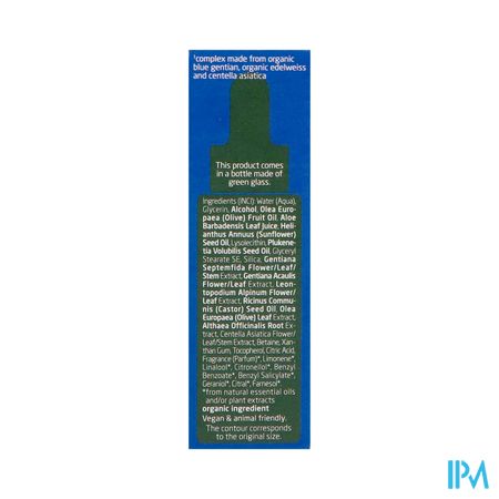 Water (Aqua) - Glycerin - Alcohol - Olea Europaea (Olive) Fruit Oil - Aloe Barbadensis Leaf Juice - Helianthus Annuus (Sunflower) Seed Oil - Lysolecithin - Plukenetia Volubilis Seed Oil - Glyceryl Stearate SE - Silica - Gentiana Septemfida Flower/Leaf/Stem Extract - Gentiana Acaulis Flower/Leaf Extract - Leontopodium Alpinum Flower/Leaf/Stem Extract - Ricinus Communis (Castor) Seed Oil - Olea Europeae (Olive) Leaf Extract - Althaea Officinalis Root Extract - Centella Asiatica Flower/Leaf/Stem Extract - Betaine - Xanthan Gum - Tocopherol - Citric Acid - Fragrance (Parfum) - Limonene -Linalool - Citronellol - Benzyl Benzoate - Benzyl Salicylate - Geraniol - Citral - Farnesol