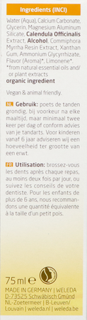 Calendula-extract zorgt voor een gezonde mondholte en helpt kleine weefselbeschadigingen snel herstellen. Het toegevoegde mirre-extract heeft een zuiverende werking. Aan de tandpasta zijn geen fluoride en synthetische schuimmiddelen toegevoegd. Mag gebruikt worden in combinatie met homeopatische geneesmiddelen.