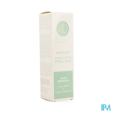 Wiotech® Triple Action Peeling bevat onder andere fruitzuren, abrikozenpit poeder en ureum, wat een zeer doeltreffende peeling via drie verschillende mechanismen (chemisch – mechanisch –enzymatisch) mogelijk maakt .