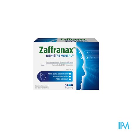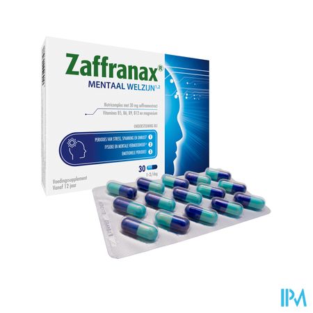 ¹ Zaffranax® bevat saffraan die het emotioneel evenwicht ondersteunt, helpt om te ontspannen en een positieve instelling te behouden. Het bevat magnesium dat bijdraagt aan de geestelijke veerkracht en helpt om vermoeidheid te verminderen, vitamine B5 die bijdraagt aan de normale mentale prestaties, inclusief stressbestendigheid en concentratie en de vitamines B6, B9, B12 die helpen om vermoeidheid te verminderen.